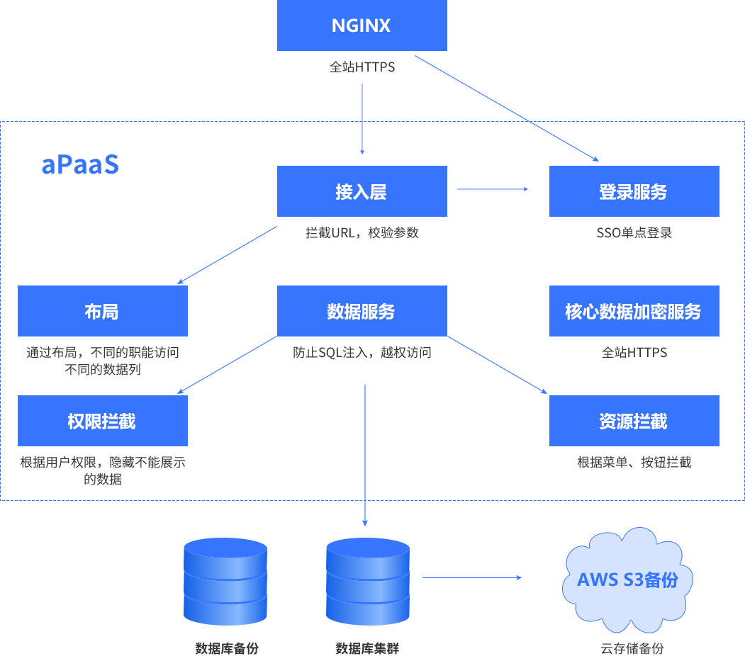备注:::::::::平台与业务分离,,,,,,,,,,,,,,,开发运维只运维平台,,,,,,,,,,业务专家生成的元数据(表/字段/运行逻辑)+业务数据全部以碎片的方式存储在DB中,,,,,,,,,,技术人员无法解读,,,,,,,,,,只有业务专家授权后才能导出元数据+业务数据